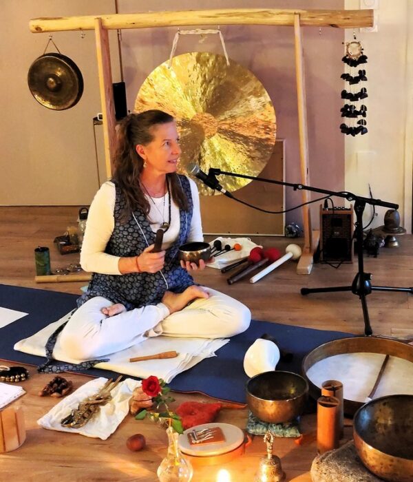 Christel Dieuzaide apporte une dimension intériorisée et énergétique du son, nourrie par le Natha Yoga, les Kototama, et les voyages sonores & yoga nidra.